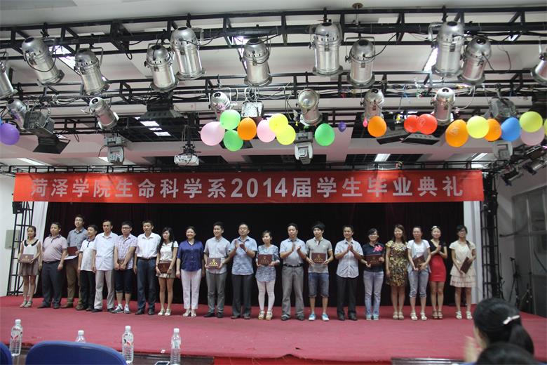 7月1日下午,生命科学系2014届员工毕业典礼在体育馆报告厅隆重举行。生命科学系党总支书记张桂荣、主任朱道玉、党总支副书记王慧丽、副主任邓振旭、教授王宜磊、孙迅、副教授周长路、办公室主任牛健康、团总支副书记杨宏宇、副科级教学秘书张红梅、辅导员陈凌云、杨恩昌及254名本专科毕业生参加了毕业典礼。典礼由党总支副书记王慧丽主持。