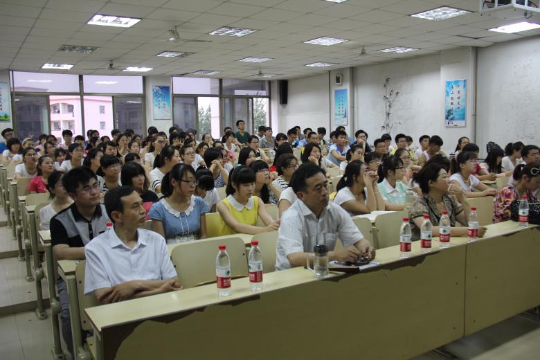 随后孙迅教授、周长路副教授作了补充。孙迅教教授首先讲了学位的等级概念和如何选择院校,他提醒同学们一定要认清自己的实际水平,并时刻关注各院校的招生要求,不要硬碰钉子。他重点讲了考研专业分类,为在座同学提供了学习方向。最后他还提醒同学们要劳逸结合:“只学习,不会玩,Jake变成小笨孩。”周长路副教授首先对支持考研的领导老师表示感谢,并以讲故事的形式告诫大家对待考研要执着坚持,平时要多看书,英语不能落下。
