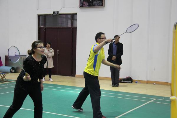月7日下午,生命科学系、文学与传播系教职工对阵羽毛球赛于新体育馆一楼如火如荼的进行。生命科学系主任朱道玉协同本系教师轻装上阵,生命科学系党总支书记张桂荣、副书记王慧丽在场外加油助阵。